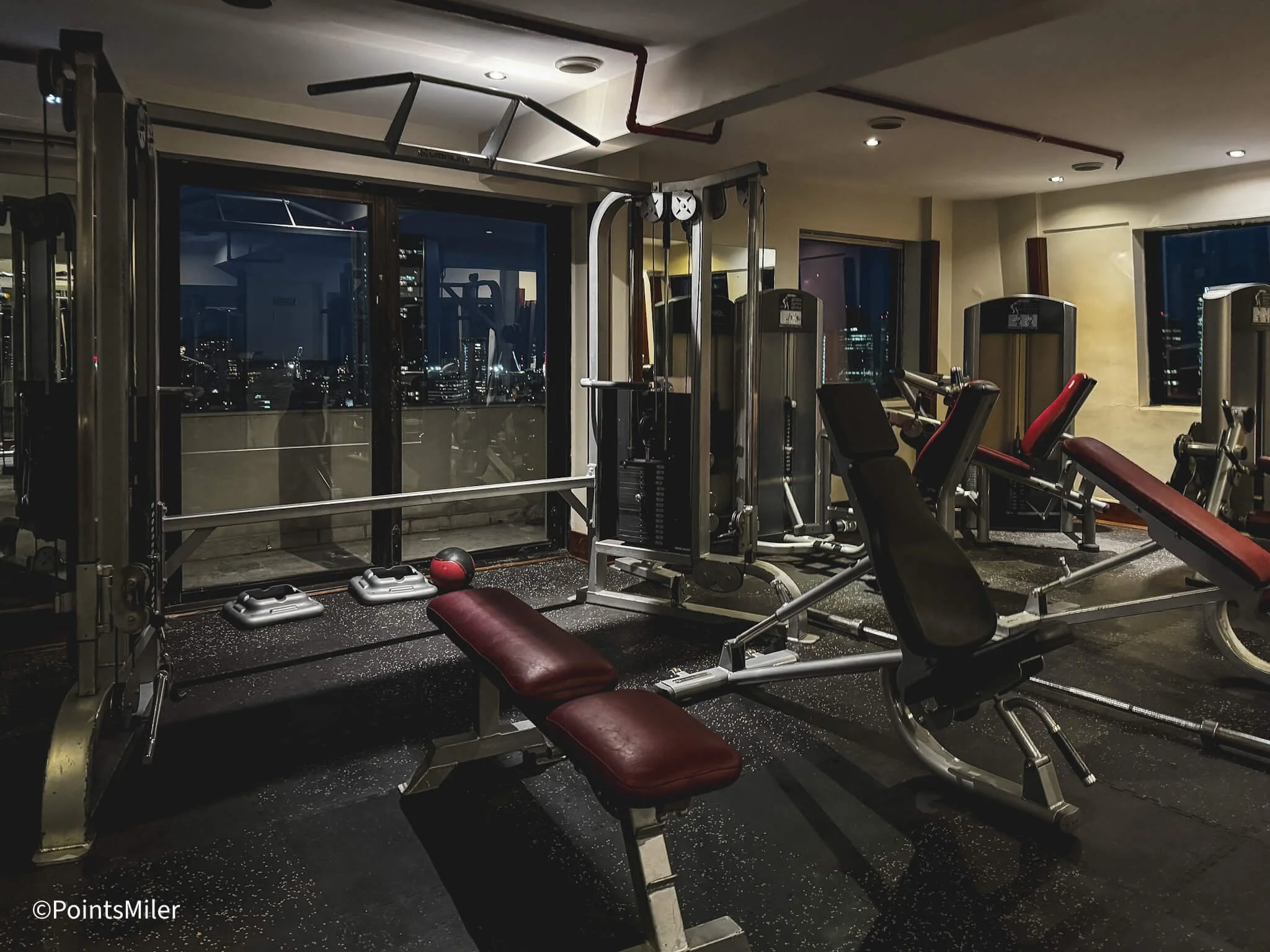 The gym was located above the spa and offered a rooftop-like vibe with panoramic city views.