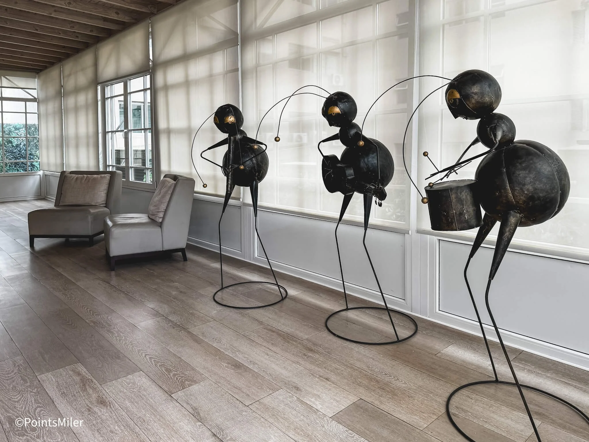 Beyond the living area was a sunroom, where two lounge chairs and whimsical metal ant artworks added a touch of character. While the artwork sparked curiosity, I wished the hotel had included a plaque or description about the artist or the meaning behind the display.