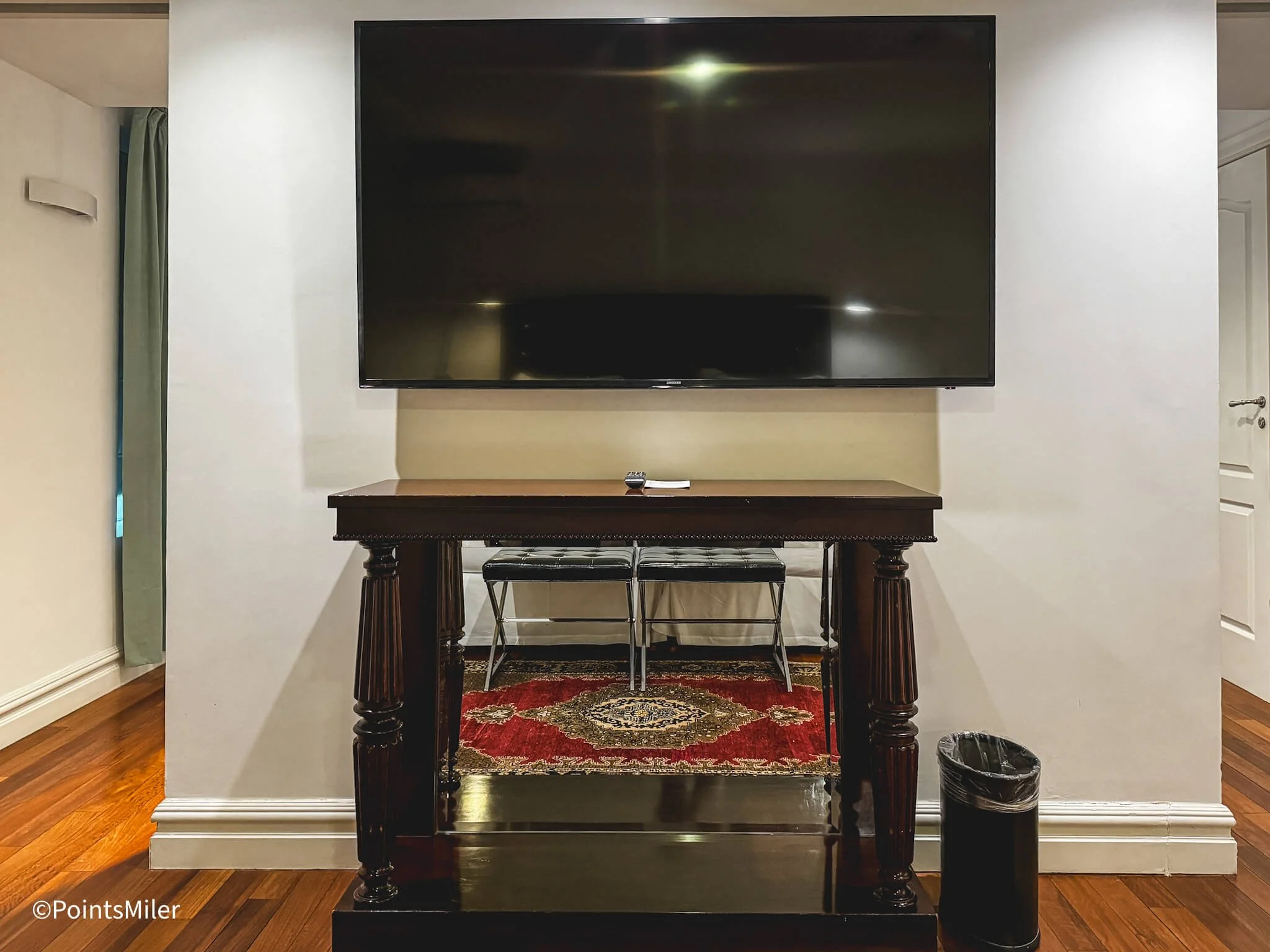 However, the mattress fell short of expectations. I tend to favor memory foam for its contouring comfort, but the bed here was unusually firm and springy, lacking the plush feel typical of high-end hotels. A second TV was mounted across from the bed, offering a separate entertainment option from the living room.