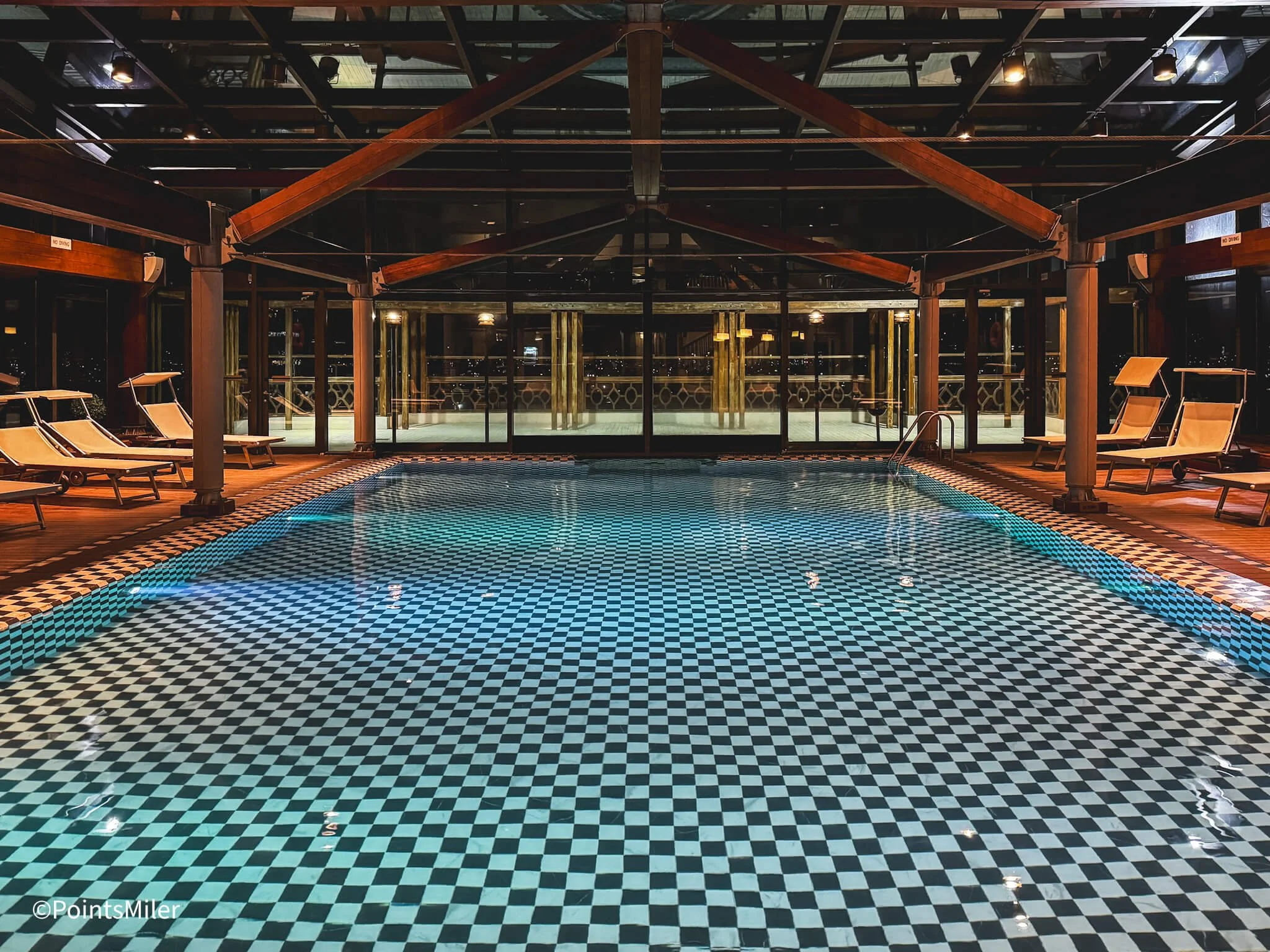 The indoor pool at Nivel 23 Club & Spa stood out with its black-and-white checkered tiles, echoing the hotel restaurant’s design.