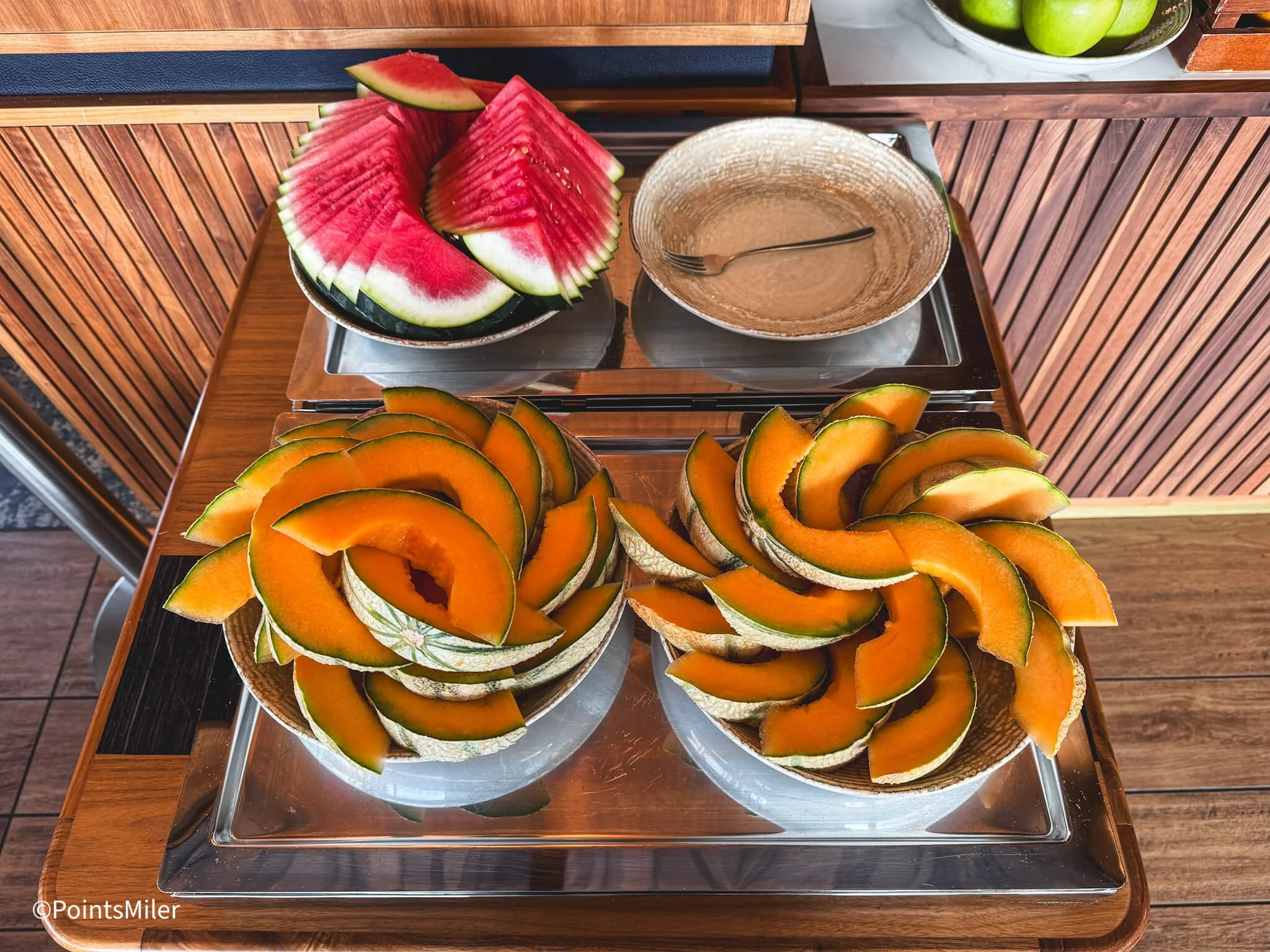 The buffet also offered some fresh fruit, and the melon slices I tried were perfectly ripe, sweet, and fragrant—especially delicious when paired with a bit of prosciutto.
