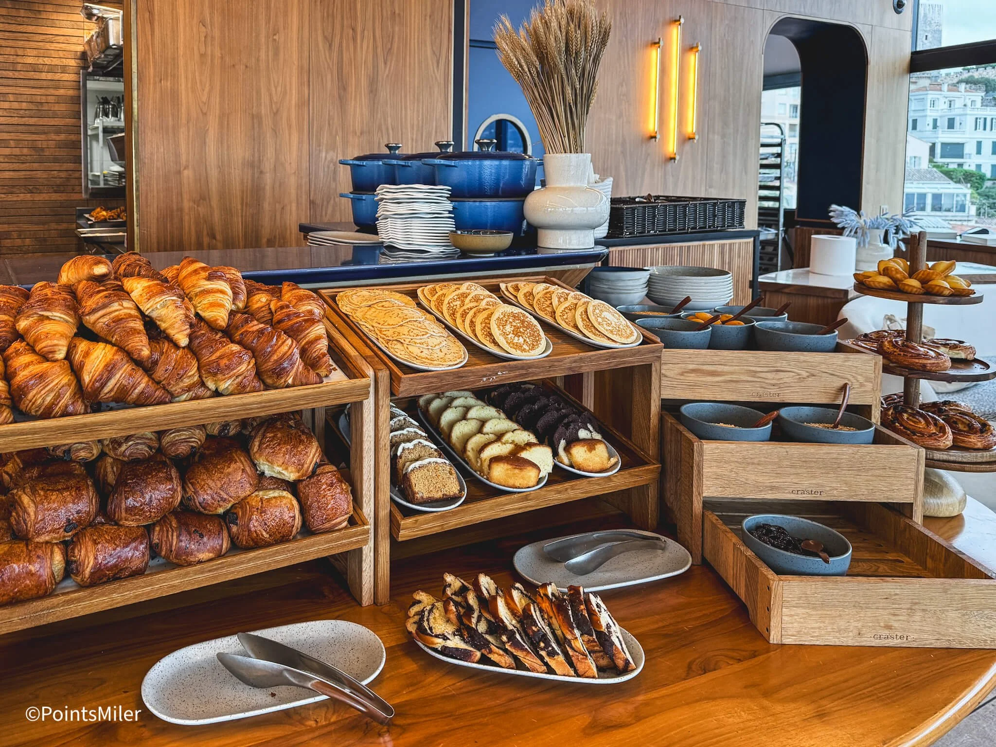 After enjoying a fantastic dinner at Marea the night before, we returned to the seventh floor the next morning for breakfast. For guests without Hilton Honors Diamond status, breakfast costs 20 euros per person, but it was complimentary for my wife and me thanks to my Diamond status.
