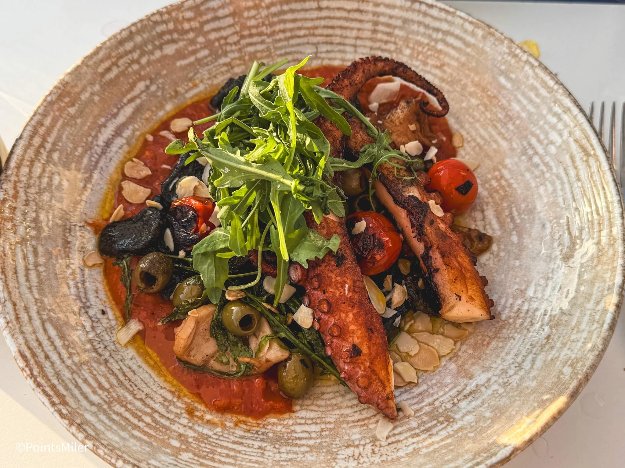 The grilled octopus was exceptionally tender, and the tangy sauce paired beautifully with the seafood.