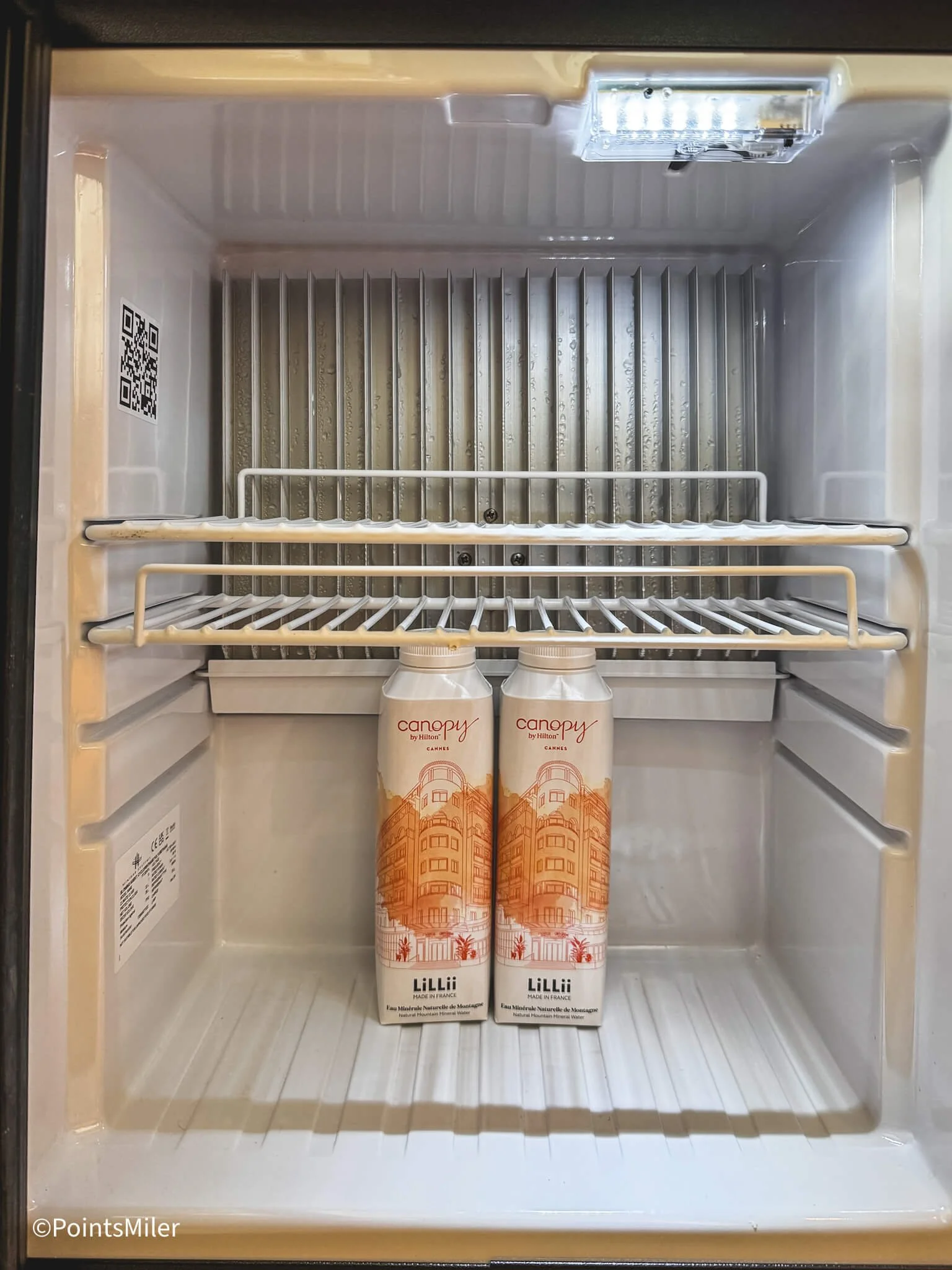 If you didn’t feel like heading downstairs, complimentary bottled water was also stocked in the fridge.