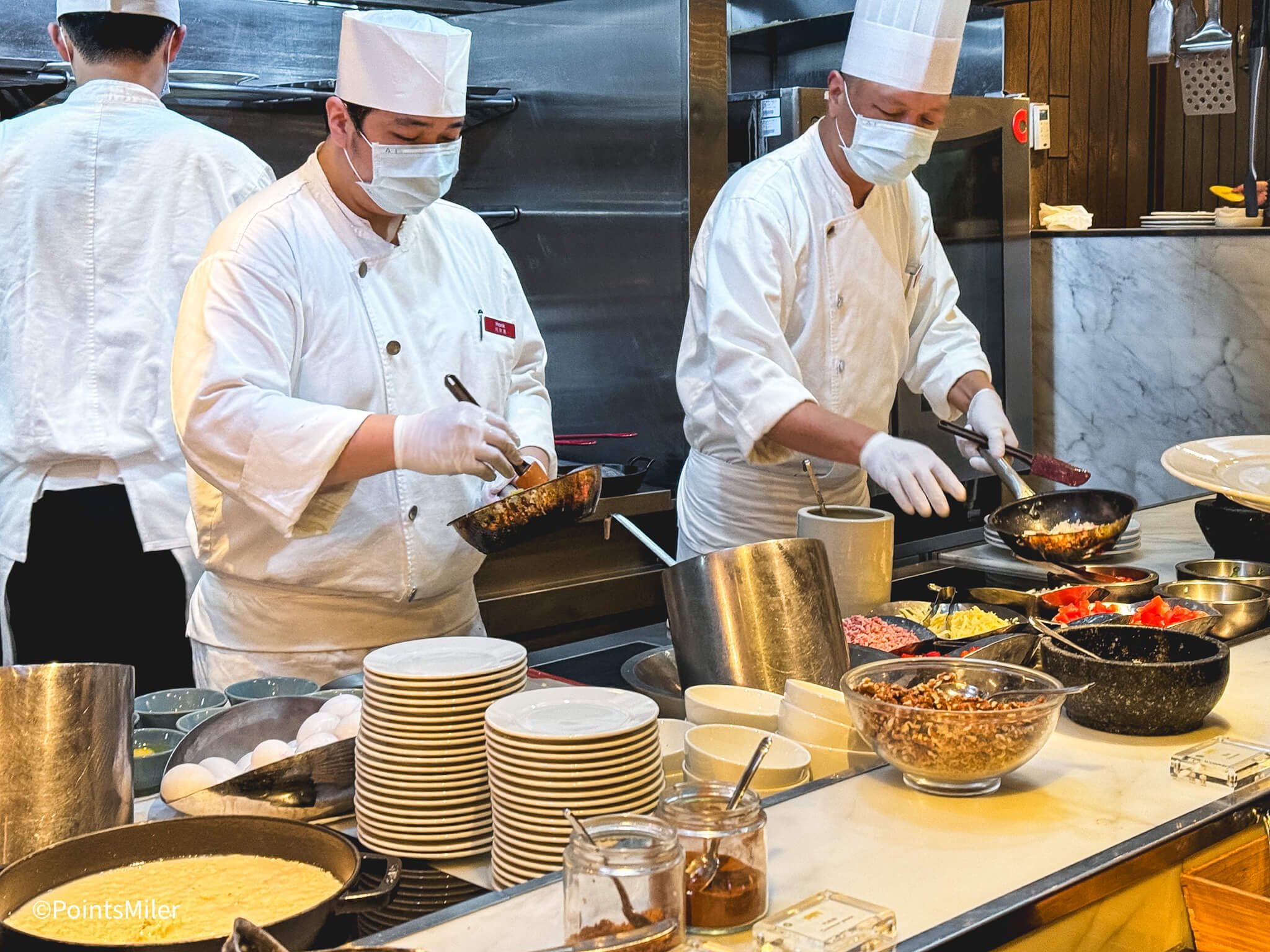 The breakfast buffet was available at the Grand Club Lounge, offering a limited selection of dishes, and at the hotel’s main restaurant, The Café, located on the lobby level, featuring a much more extensive spread. The Café served its breakfast buffet from 6:30 AM to 10 AM on weekdays and until 10:30 AM on weekends. The buffet was exclusive to hotel guests, priced at $900 per person plus a 10% service charge, but thanks to my Hyatt Globalist status, my brother and I enjoyed it complimentary.