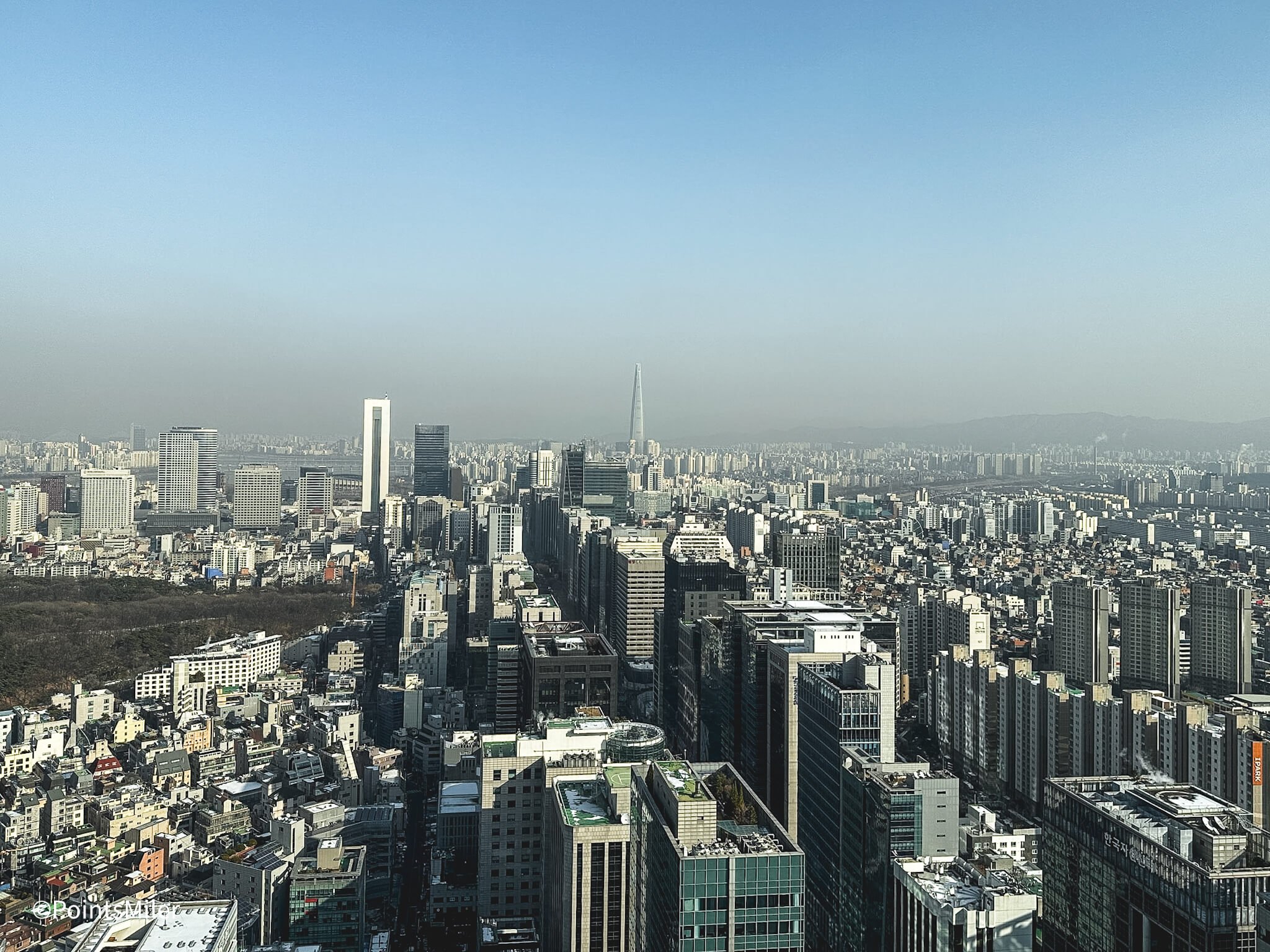 Thanks to floor-to-ceiling windows, the bedroom received lots of natural light, and I could again enjoy sweeping views of Seoul. To the right, I could see the Lotte World Tower, which is a 123-story skyscraper and currently ranks as the tallest building in South Korea.