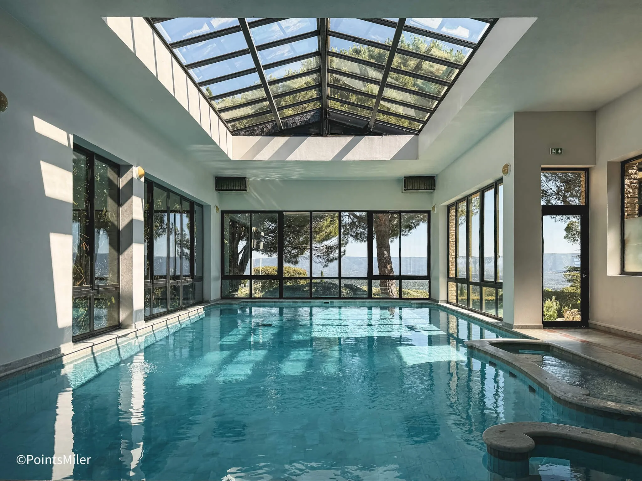 The indoor pool was just as impressive as the outdoor one, with a skylight ceiling that bathed the space in natural light.