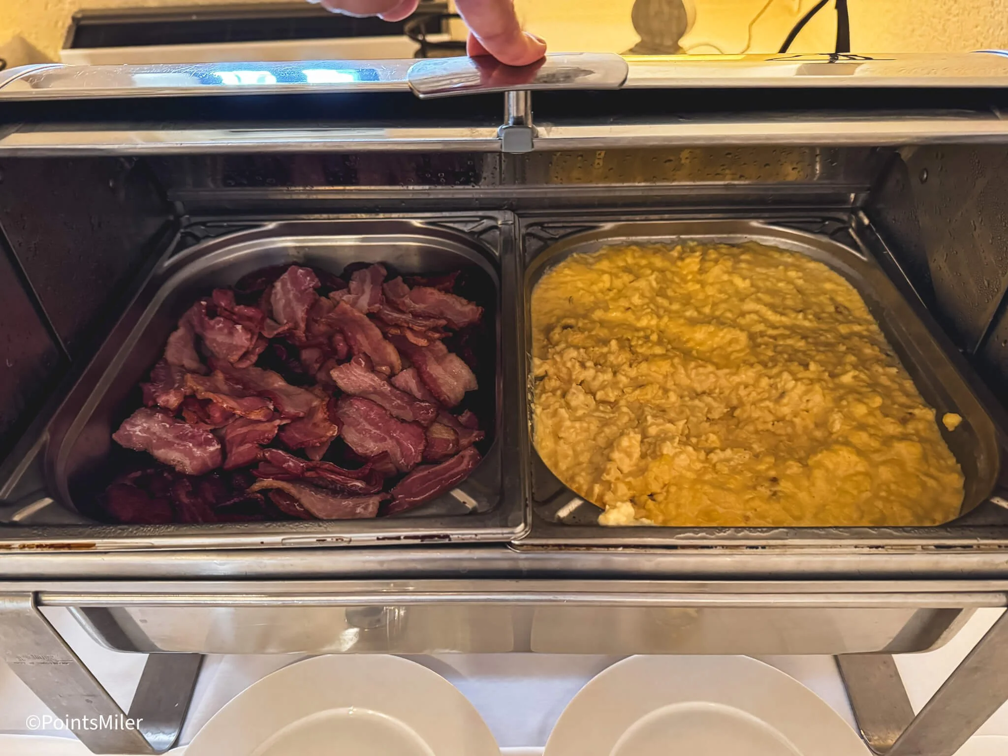 The breakfast selection leaned more toward continental offerings, with a few hot dishes such as bacon and scrambled eggs.