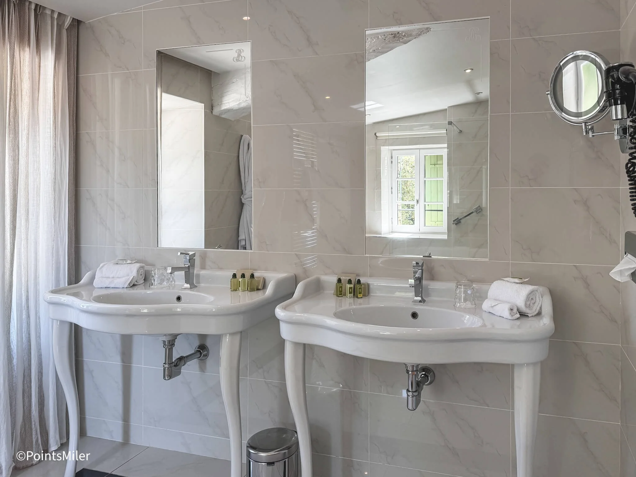 However, aside from the small ledges near the faucets for toiletries and hand towels, there was no extra storage, and I found myself wishing the hotel had included shelving or cabinets beneath the sinks. Toiletries were provided by L'Occitane, a well-known Provençal brand, and the Verveine line gave off a refreshing mix of lemon and geranium.