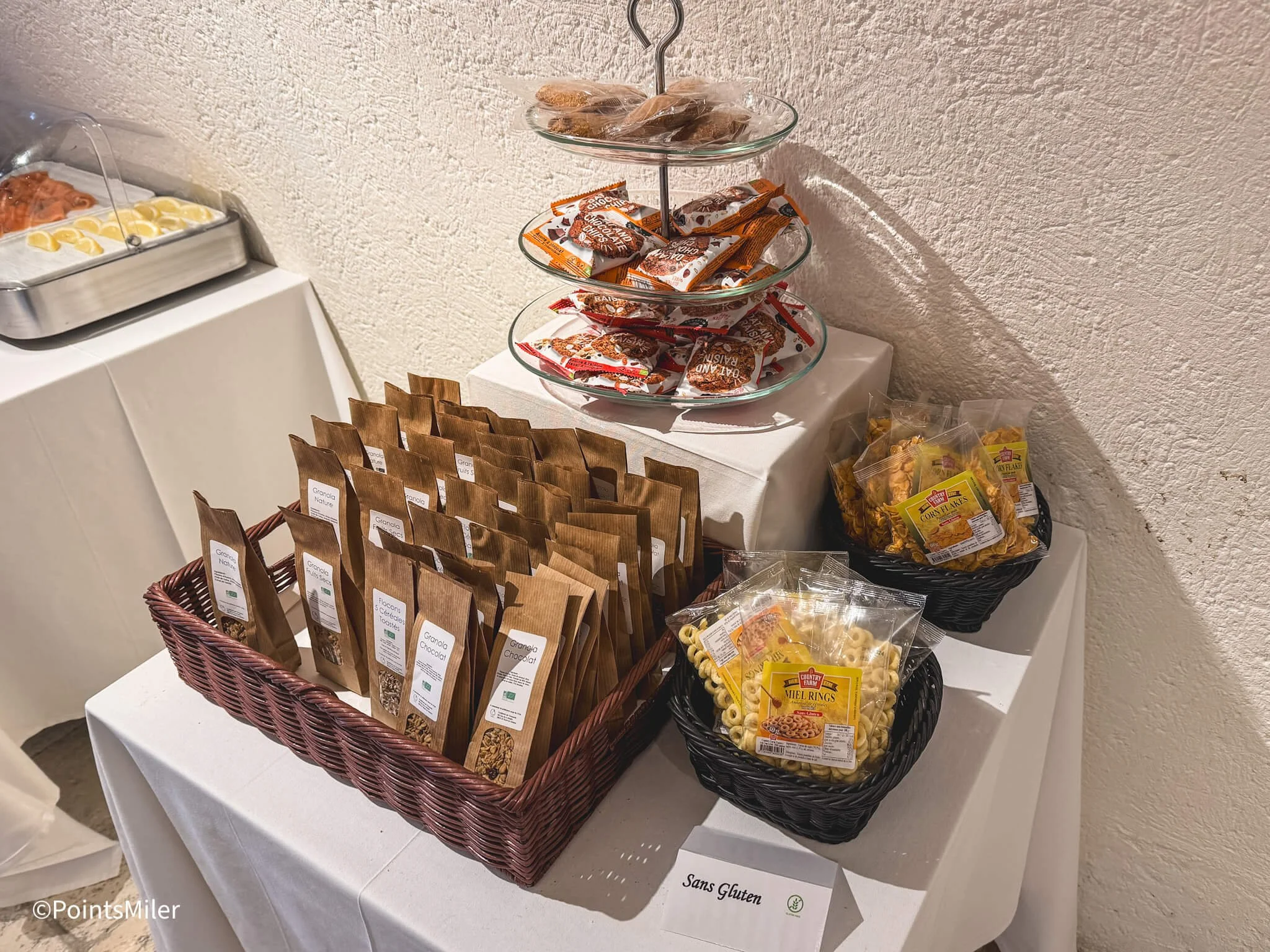I was pleasantly surprised to find a small gluten-free section offering chocolate chip cookies and granola—limited, but likely appreciated by guests with dietary restrictions.